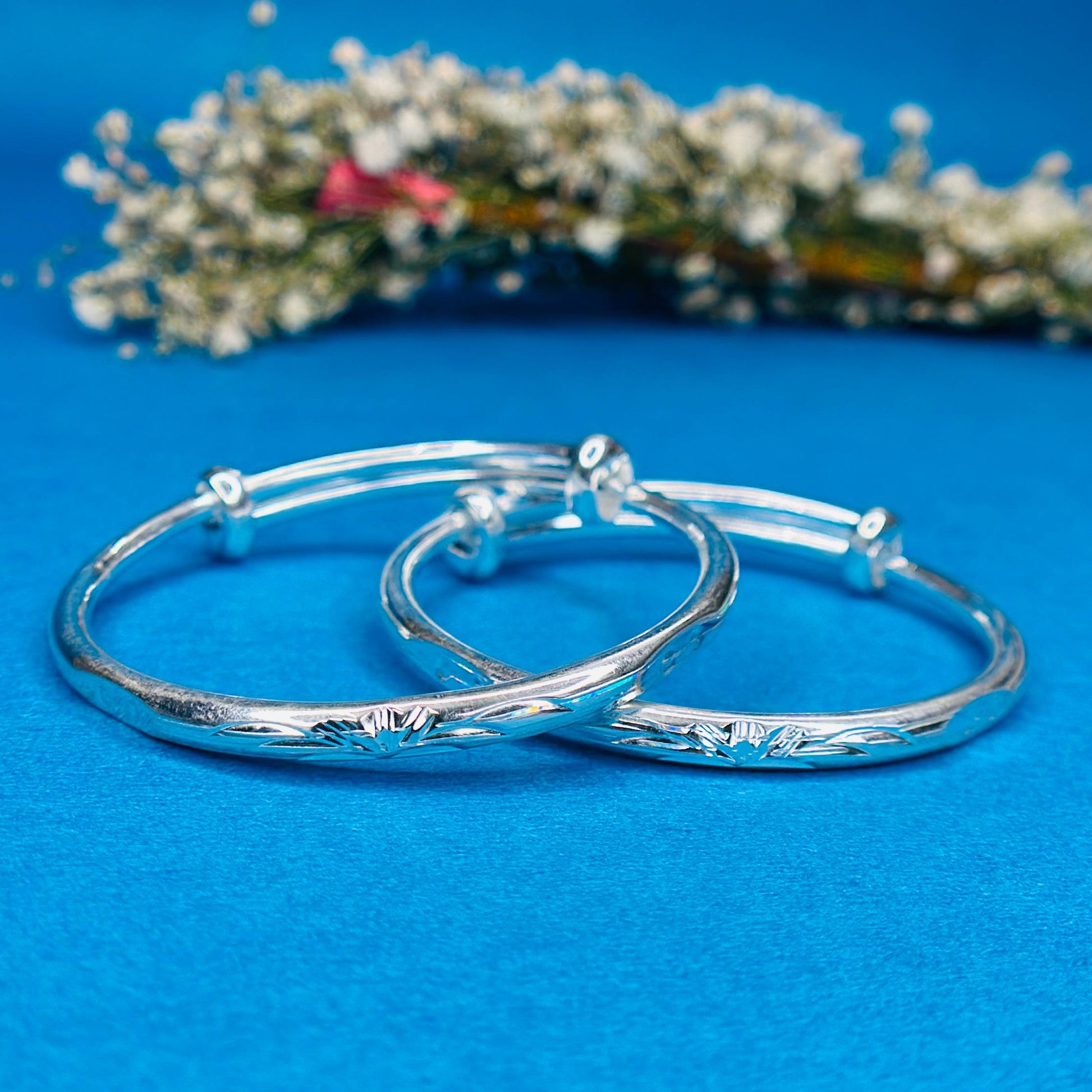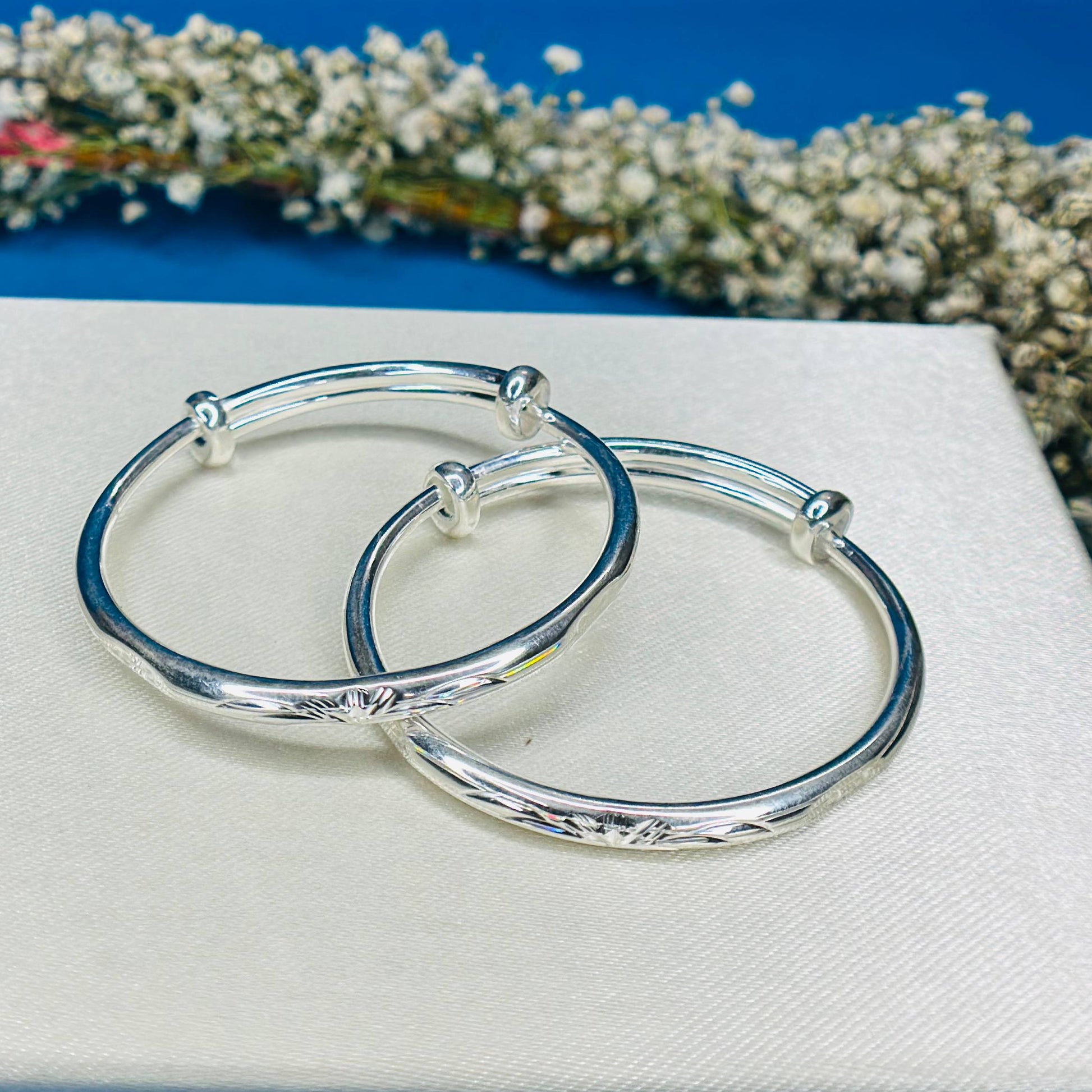 100% Pure Silver Kids Kada with Sunburst Engraved Design