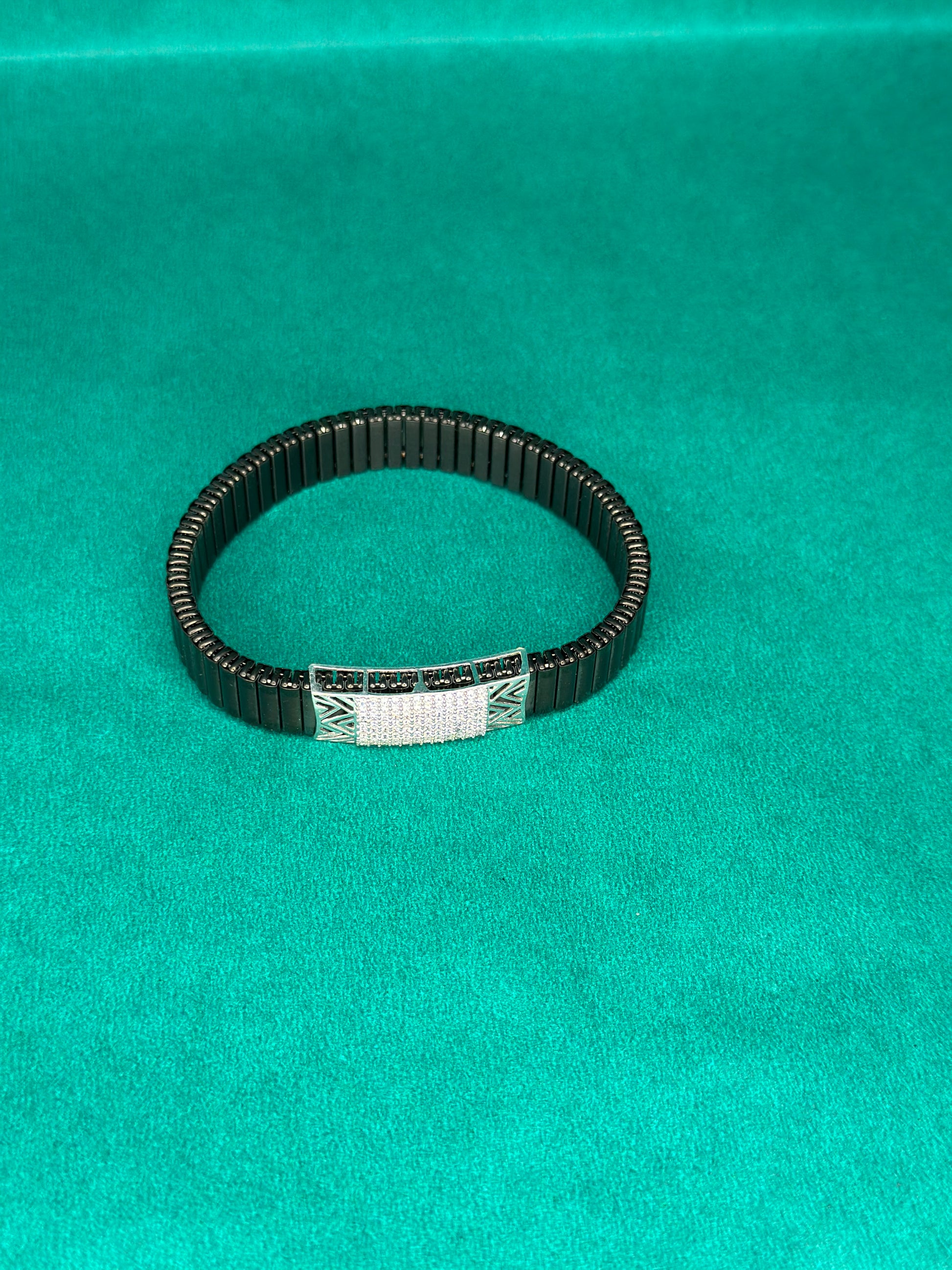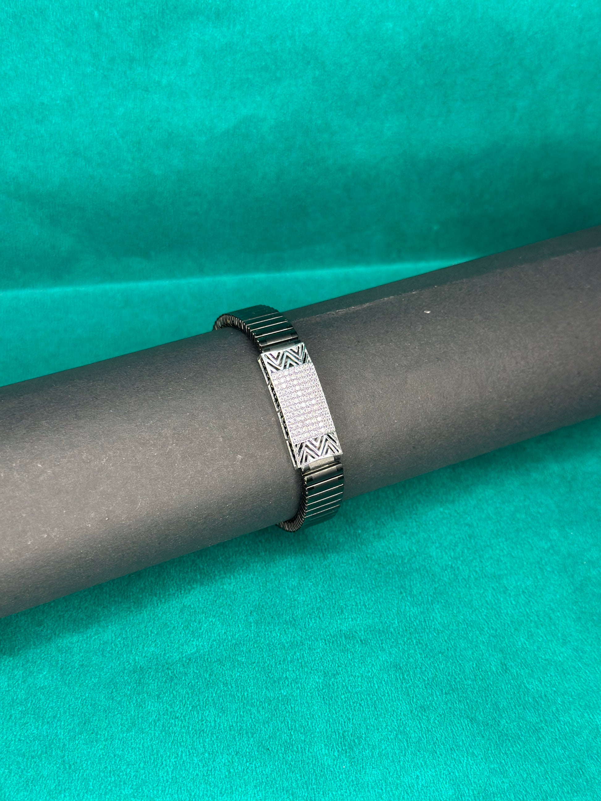 Elevate your everyday style with this 925 Silver Black Edition Adjustable Bracelet, crafted for the modern man who appreciates refined elegance. The sleek black tone band is paired with a stunning silver centerpiece adorned with shimmering cubic zirconia stones, creating a bold yet sophisticated look. Designed to complement both casual and formal wear, this bracelet offers comfort, durability, and timeless appeal.
