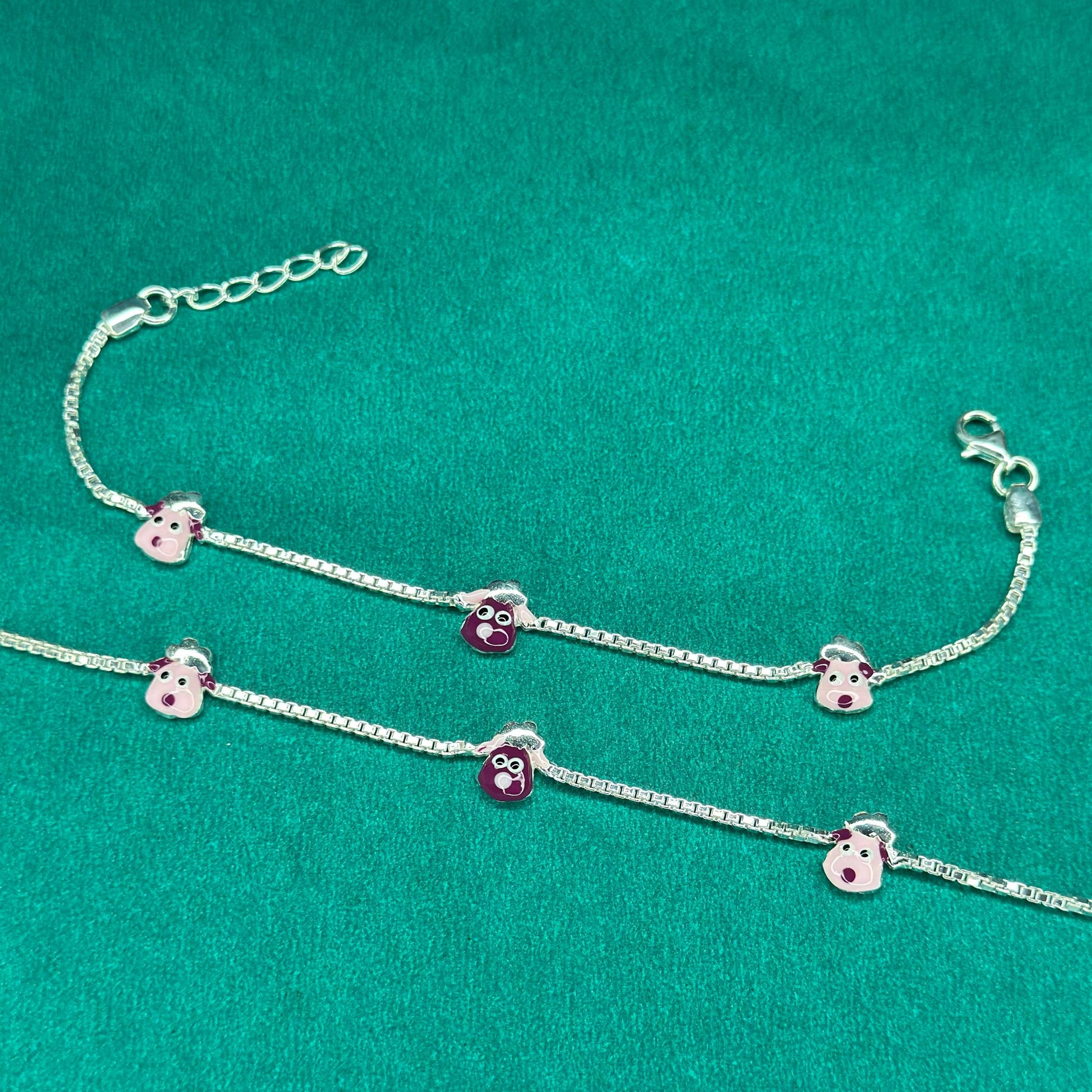 Bring smiles to your little one’s style with this charming 925 silver kids anklet featuring cute cartoon face charms in pink and maroon enamel. Designed for comfort and joy, this anklet is crafted from genuine sterling silver with a smooth, skin-safe finish. Its playful design makes it a perfect everyday accessory or a thoughtful gift for special occasions.
