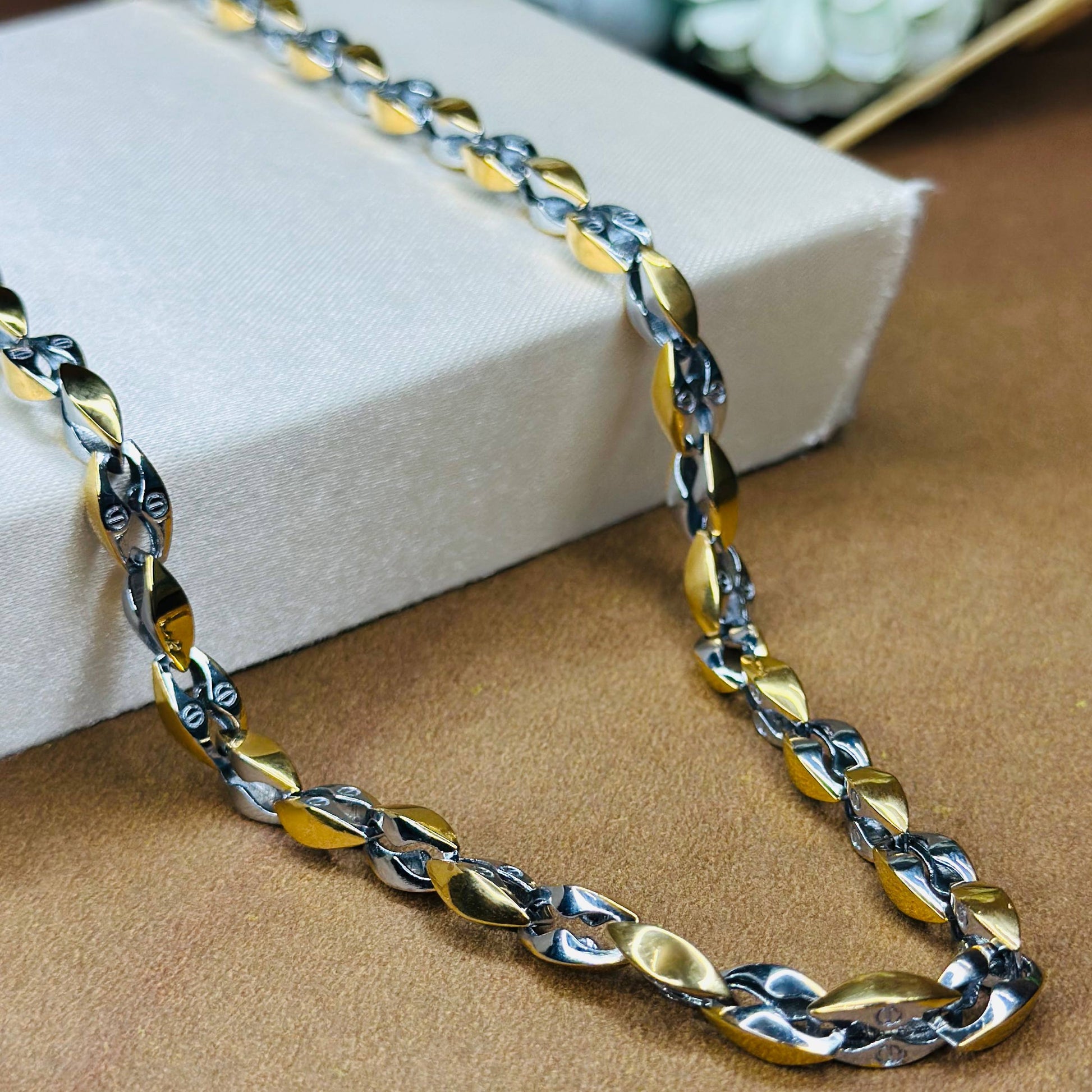 Make a bold statement with this 925 Sterling Silver Dual Tone Link Set, featuring a matching chain . The unique interlocking design combines silver and gold-plated accents, creating a sophisticated contrast that exudes modern luxury. Crafted with precision and durability, this set is perfect for elevating both everyday wear and special occasions.