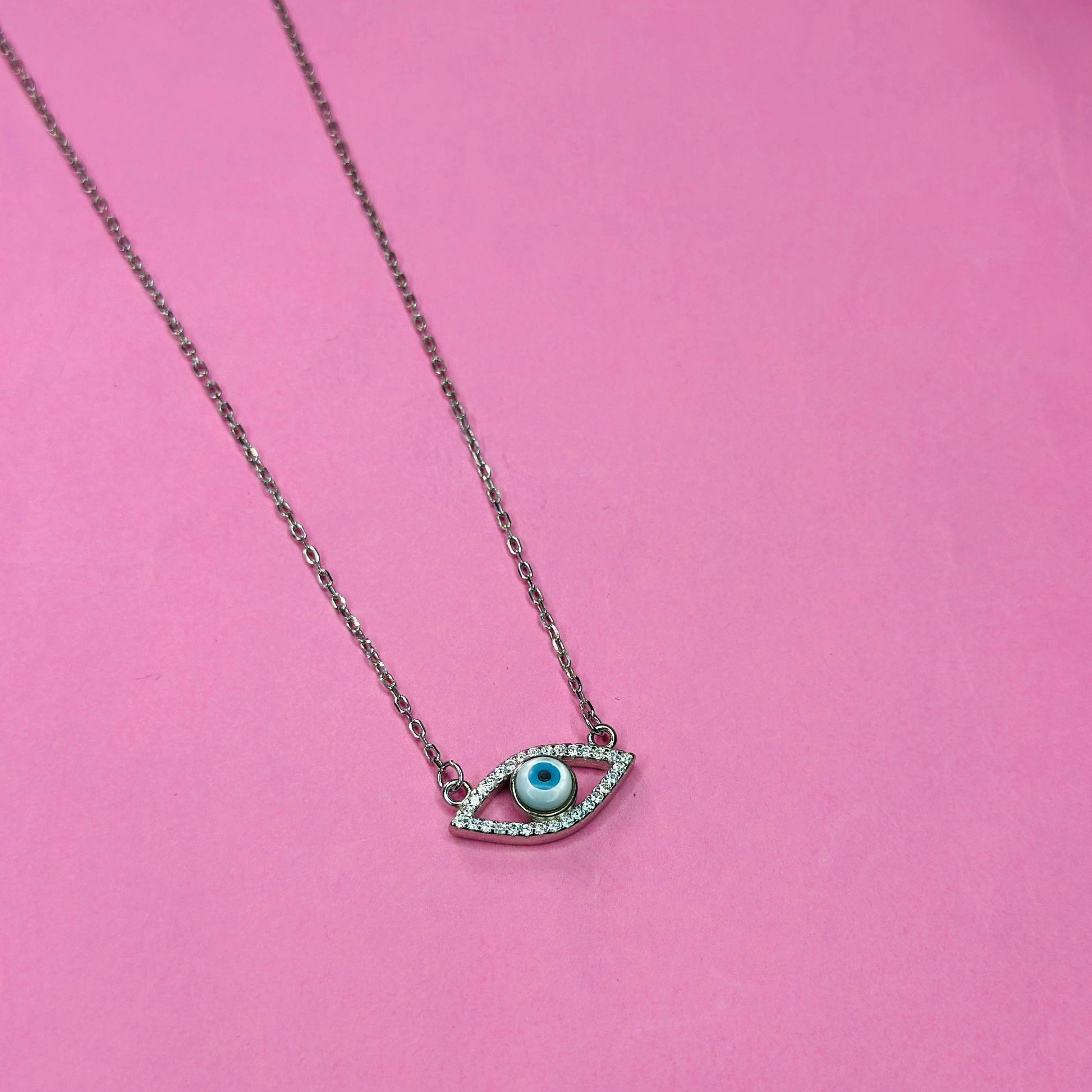 Ward off negativity in style with this 925 Sterling Silver Evil Eye Necklace. Featuring a beautifully detailed eye-shaped pendant, accented with sparkling cubic zirconia and a striking blue evil eye at the center, this necklace symbolizes protection, positivity, and good fortune.