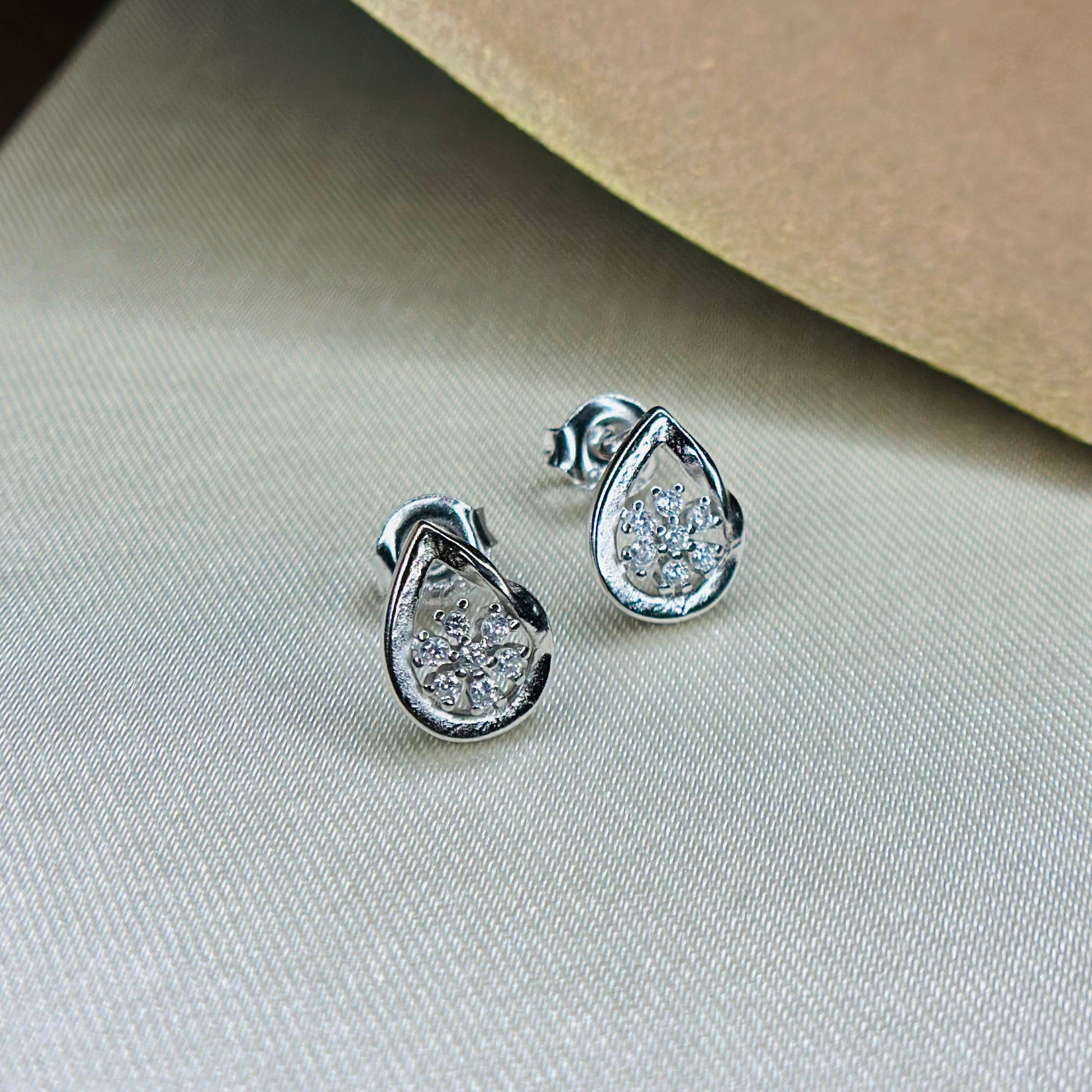 925 Sterling Silver Teardrop Snowflake Stud Earrings