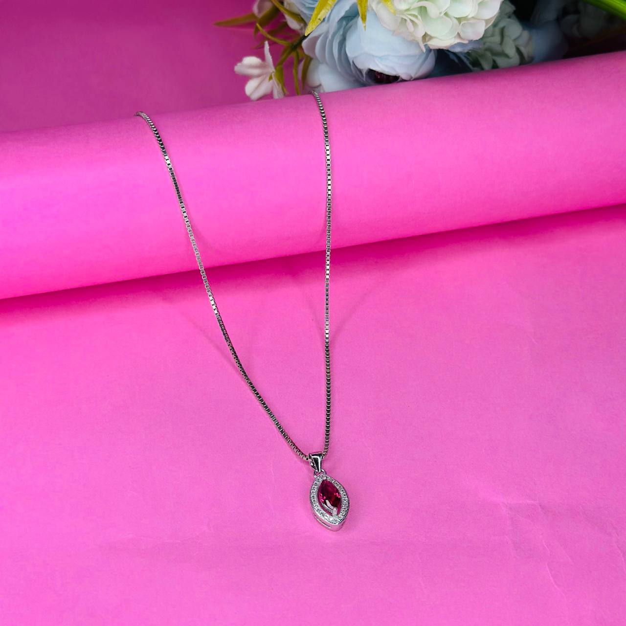 Add a touch of sophistication to your look with this 925 sterling silver pendant necklace, featuring a stunning marquise-cut deep red stone encircled by a halo of shimmering cubic zirconia. Its sleek silver chain enhances the brilliance of the pendant, making it perfect for both daily wear and special occasions. This timeless piece symbolizes passion, elegance, and graceβan essential addition to any jewelry collection.