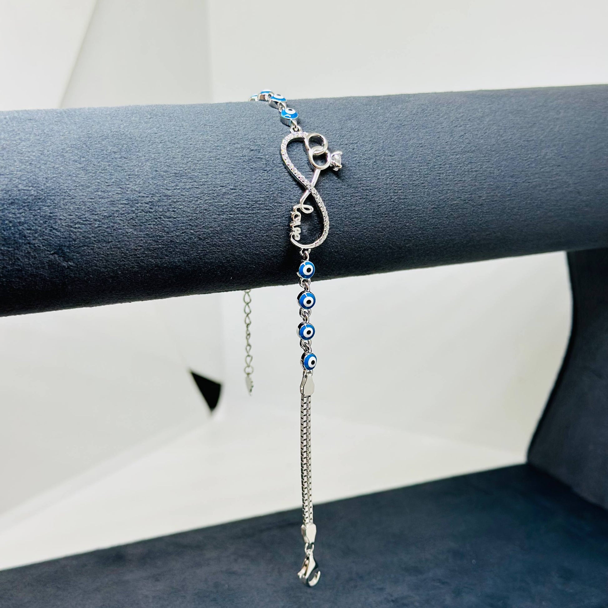 A meaningful bracelet featuring the infinity love symbol, paired with protective evil eye charms. A perfect blend of fashion and symbolism.