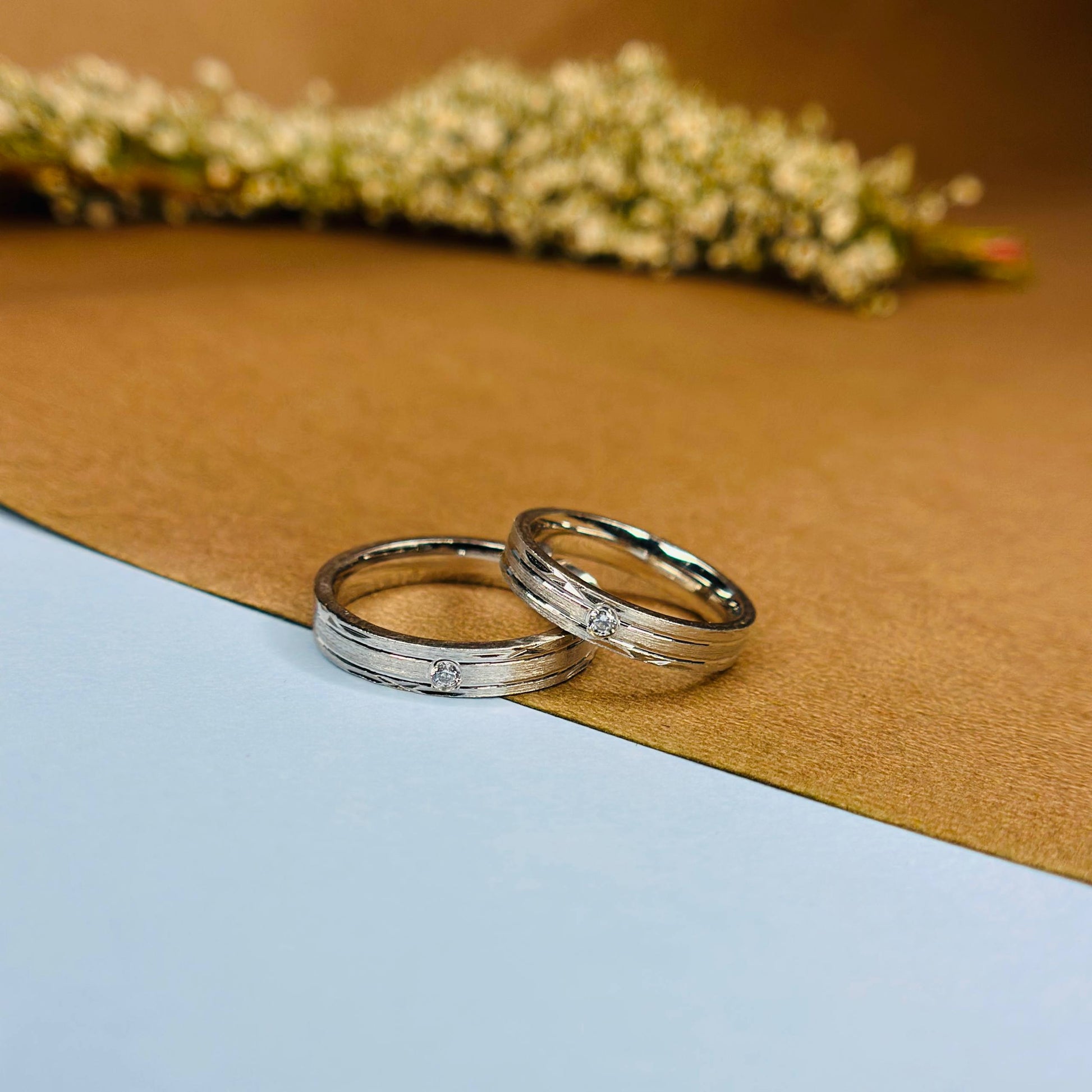 Celebrate love and commitment with these 925 pure silver couple rings, designed with a stylish textured band and a subtle cubic zirconia centerpiece. The brushed detailing gives the rings a modern, understated elegance, perfect for couples who appreciate simplicity with a touch of brilliance.
