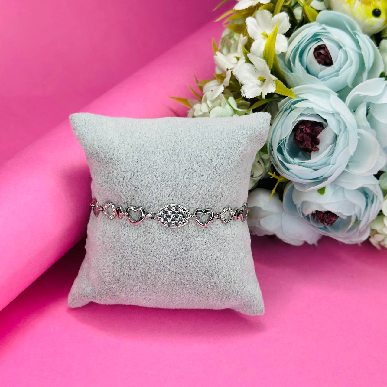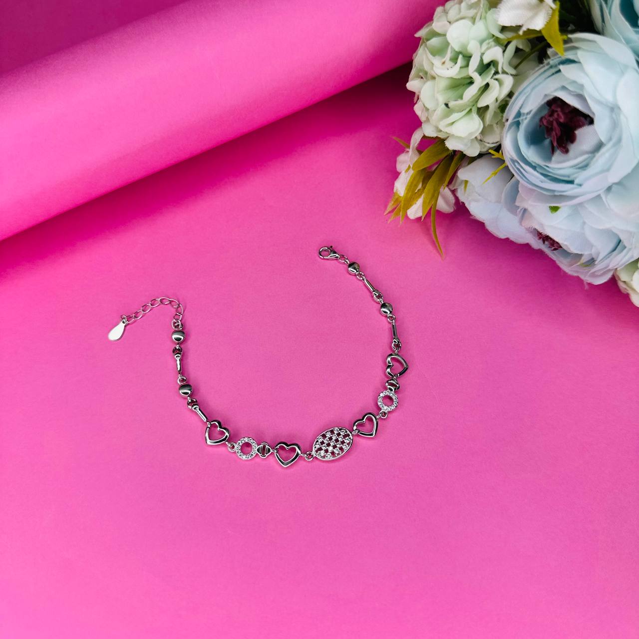 Sterling Silver Heart Shape & White Stone Gems Bracelet for Her