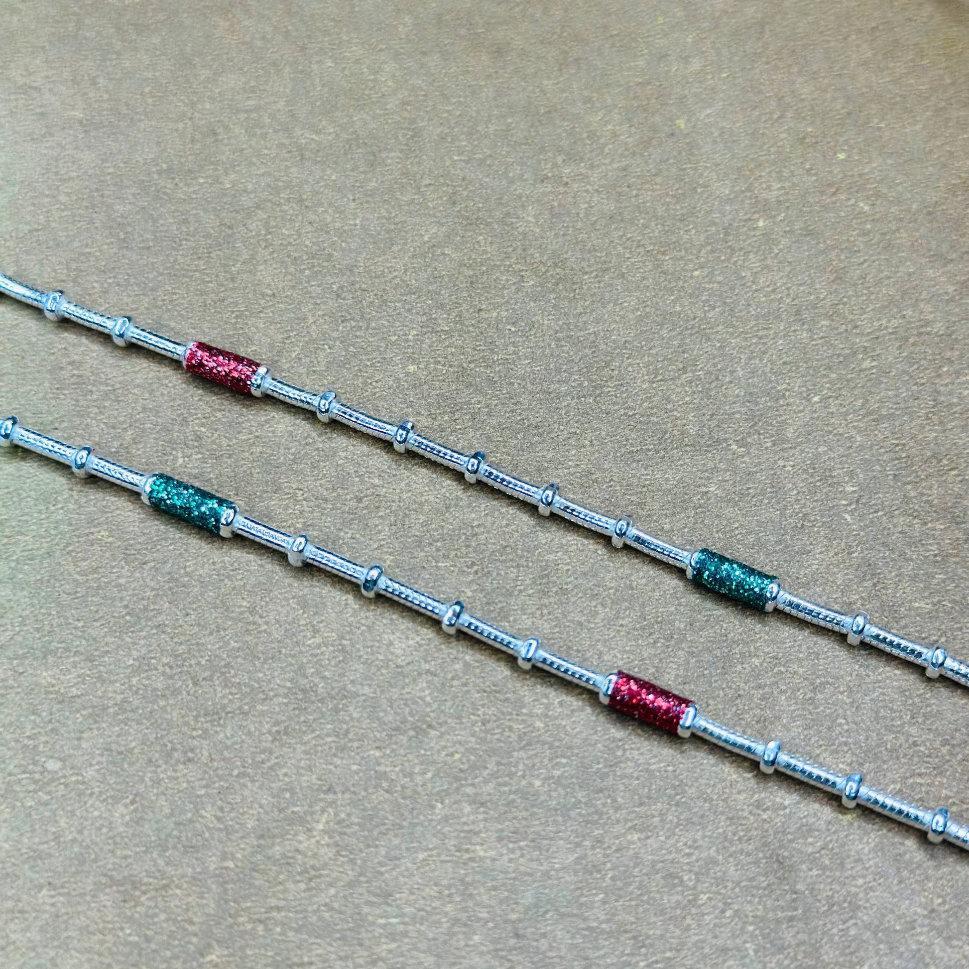 Celebrate style with this vibrant sterling silver anklet, crafted with a sleek chain highlighted by alternating red and green enamel tube accents. The colorful detailing adds a playful yet elegant charm, making it a standout accessory for festive occasions as well as daily wear.